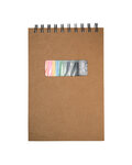 • Spiral bound drawing set with Kraft notebook and colored pencils
